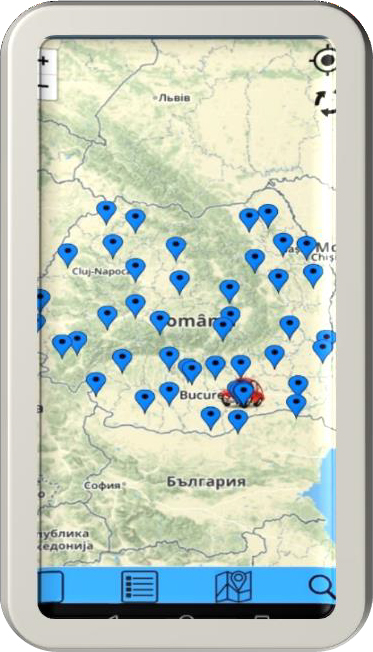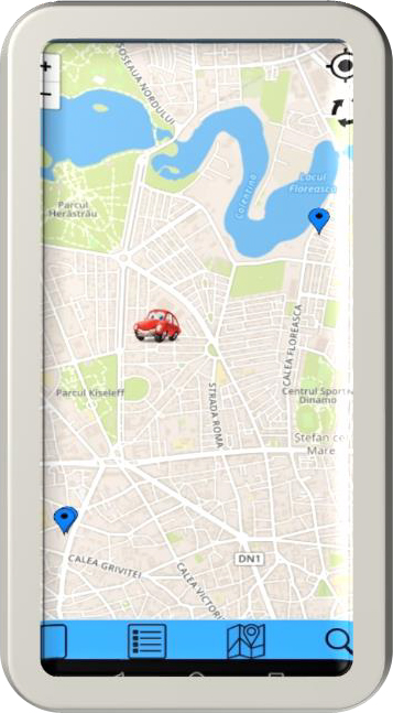Poziția utilizatorului este reprezentată sugestiv pe hartă, acesta centrandu-se lin pe această locație.