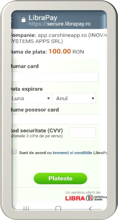 Secțiunea Termeni și condiții – conține toate detaliile cu privire la aspectele care reglementează relația juridică dintre utilizatori și administratorul aplicației CarShineApp. Tot aici sunt precizate condițiile și regulile după care se pot face rezervările, costurile acestora, modalitatile în care se pot anula sau trimite catre alte persoane.
