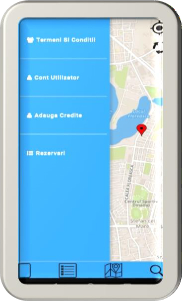 Acesta conține secțiunile dedicate ulitizatorului: termenii și condițiile de utlizare a aplicației, contul utlizatorului, adaugă credite și rezervările utilizatorului.